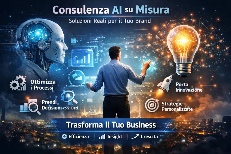 Lavoriamo insieme con un obiettivo chiaro: trasformare l’intelligenza artificiale in risultati reali per il tuo business, rendendo il tuo brand più forte, riconoscibile e difficile da ignorare.